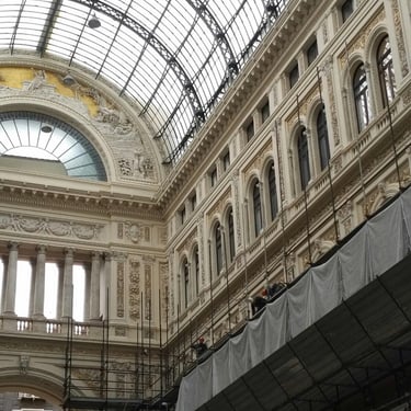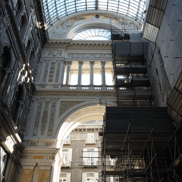 Lavori di restauro dei prospetti della Galleria Umberto di Napoli